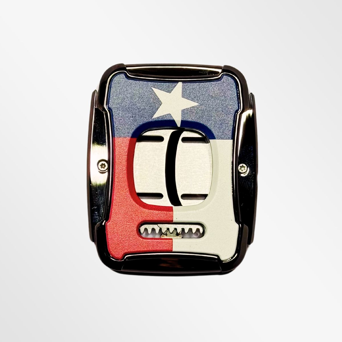 The Valor Cigars Lone Star Cigar Cutter stands out with its Texas flag design, paying homage to the state known for its rich history and vibrant culture. Constructed from a robust aluminum alloy frame and encased in ABS durable skin, this cutter is designed to withstand the rigors of frequent use while maintaining a sleek, attractive appearance.
